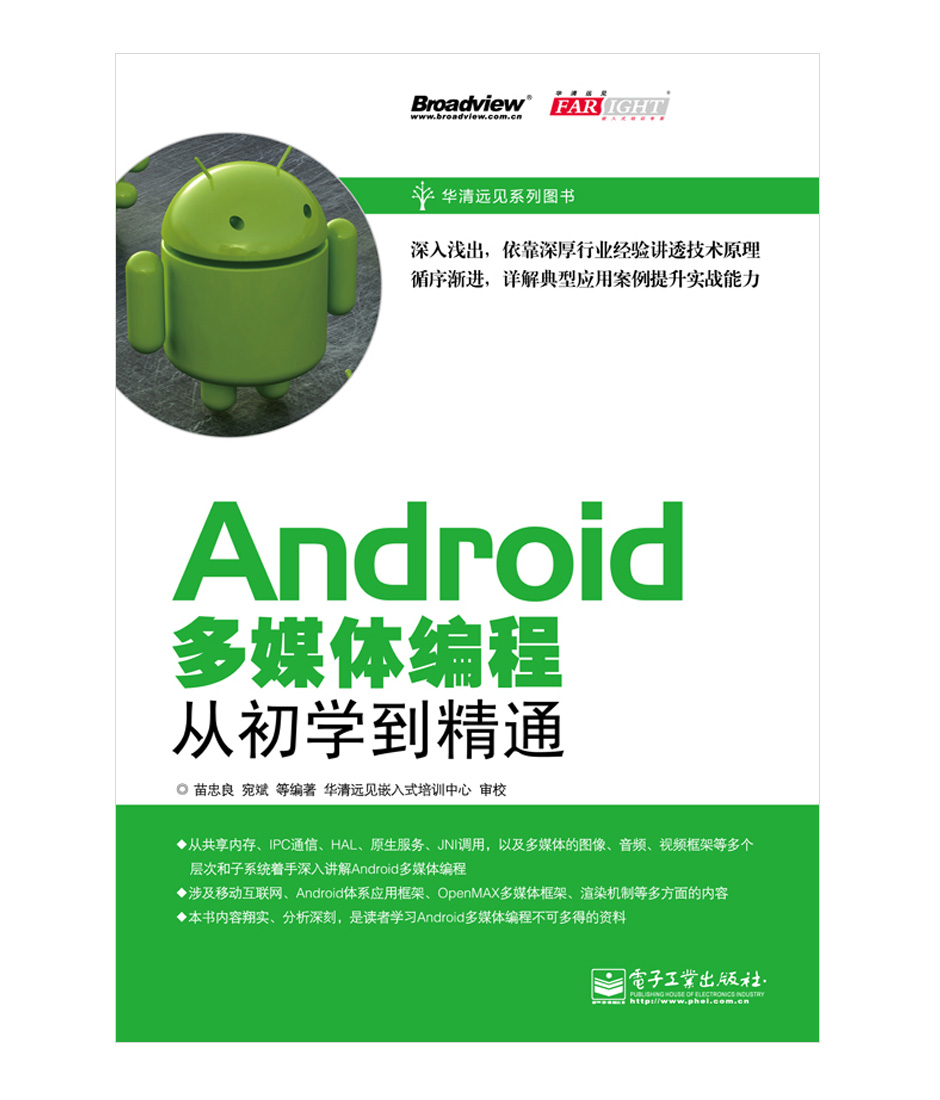 圖書簡介 《《android多媒體編程從初學到精通》主要圍繞著android多媒體編程進行,縱向上,從共享內存、ipc通信、hal、原生服務、jni調用,以及多媒體的圖像、音頻、視頻框架等多個層次和子系統著手;橫向上,貫穿了移動互聯網、android體系應用框架、openmax多媒體框架、渲染機制等方面,深入淺出地介紹了開發多媒體應用需要了解和掌握的多媒體框架及相關知識。涉及android多媒體編程的所有主要內容。