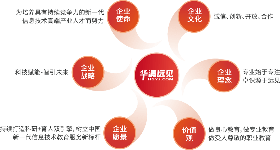 北(bei)京華清遠見教(jiao)育(yu)科(ke)技有限公司,成立(li)于(yu)2004年,是一(yi)家集產學研(yan)用于(yu)一(yi)體的(de)科(ke)技驅(qu)動型新一(yi)代(dai)信息技術(shu)領(ling)域教(jiao)育(yu)服(fu)(fu)務領(ling)導品牌。致(zhi)力于(yu)讓(rang)每位學子都能簡單直接高效地獲取緊跟科(ke)技時代(dai)前沿的(de)IT教(jiao)育(yu)服(fu)(fu)務,實現高端職業夢(meng)想。從(cong)線(xian)下到(dao)線(xian)上(shang),從(cong)教(jiao)學到(dao)研(yan)發,從(cong)理(li)論到(dao)實踐,從(cong)校(xiao)園(yuan)到(dao)職場,同(tong)時為企業、高校(xiao)、 個人提供全(quan)方位的(de)人才培(pei)養(yang)解決方案(an)。目前已(yi)在全(quan)國主(zhu)要一(yi)二線(xian)城市成立(li)11個學習中(zhong)心,為企業輸送33余萬(wan)IT人才,并為1200余所高校(xiao)、20000余家企業賦(fu)能人才培(pei)養(yang)和人才支撐。