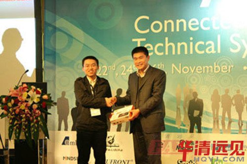 華清遠見(jian)教育集團總(zong)裁季久峰為(wei)ARM研討會(hui)中(zhong)獲獎人士(shi)頒獎