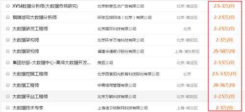 根據各(ge)大招聘網站對大數(shu)據方向的具(ju)體招聘信息更可以(yi)看出,現如今(jin),企業(ye)對大數(shu)據人才的需求是多么緊缺(que),薪資也是水(shui)漲船高。