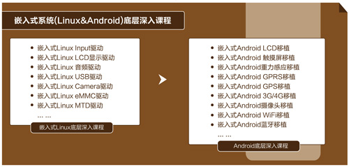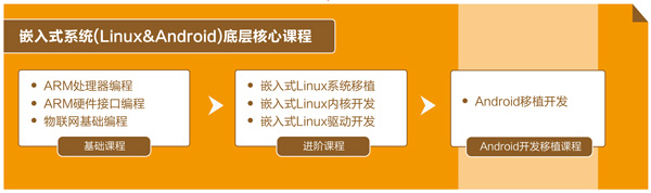ARM 處理器、Linux 內核驅動、Android 移(yi)植(zhi)驅動等內容即(ji)是核心技術,也是難(nan)點部分。課(ke)程對這部分內容分為了初級(ji)階段(duan)和高級(ji)階段(duan)兩個部分,分別培(pei)養不(bu)同層次(ci)嵌入(ru)式工(gong)程師。學習高級(ji)階段(duan)課(ke)程,需要經過(guo)選拔(ba)、考(kao)試環節。