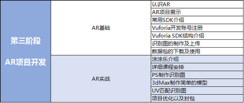 2、階段目標:熟悉市(shi)場上常用(yong)的(de)AR SDK,明白市(shi)場需求(qiu),明確(que)以(yi)后的(de)就業方向(xiang);掌握增強現(xian)實企業級(ji)開發流程