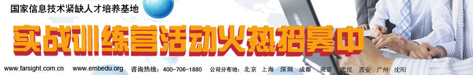 4個月集中、強化訓練,一人一機(ji)(ji)一板,實(shi)戰項目體驗,在嵌入(ru)(ru)式(shi)行業資(zi)深技(ji)術(shu)經理的(de)帶領(ling)下,依照嵌入(ru)(ru)式(shi)開發標(biao)準工作流程(cheng)及工作規范(fan),感(gan)受嵌入(ru)(ru)式(shi)開發人員真實(shi)工作狀態,迅速提高(gao)你的(de)就(jiu)業競(jing)爭力(li),搶占先機(ji)(ji),成為(wei)IT行業中嵌入(ru)(ru)式(shi)職場(chang)新貴(gui)!