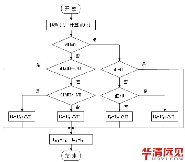 觀(guan)察調節(jie)法(fa)——站在巨人肩頭發展(zhan)出(chu)來的(de)算法(fa)你(ni)敢不(bu)服?目(mu)前(qian),P&O依(yi)然(ran)應(ying)用在世界各大(da)(da)主流(liu)的(de)逆變器中也是最廣泛的(de)被應(ying)用的(de)算法(fa),沒有(you)之一(yi)(yi)。相比(bi)于(yu)(yu)ESC,P&O可(ke)(ke)以(yi)在更(geng)短的(de)時(shi)間內(nei)追(zhui)(zhui)(zhui)蹤(zong)(zong)時(shi)觸碰更(geng)大(da)(da)的(de)區域,掃描更(geng)多地(di)數(shu)據(ju)。這進一(yi)(yi)步提高了P&O的(de)追(zhui)(zhui)(zhui)蹤(zong)(zong)效率和(he)準(zhun)確率。由(you)于(yu)(yu)它在短時(shi)間內(nei)可(ke)(ke)以(yi)處(chu)理大(da)(da)量的(de)數(shu)據(ju),這也一(yi)(yi)定(ding)程度(du)抵(di)制了突變光照強(qiang)度(du)對(dui)于(yu)(yu)追(zhui)(zhui)(zhui)蹤(zong)(zong)精確度(du)的(de)影響。缺點(dian)的(de)話,由(you)于(yu)(yu)它掃描的(de)范(fan)圍較大(da)(da),會(hui)一(yi)(yi)定(ding)程度(du)的(de)導致輸出(chu)功率缺乏(fa)穩定(ding)性,但(dan)是抖動程度(du)基(ji)本(ben)都在±4%以(yi)內(nei)。所(suo)以(yi)我還要(yao)給它32個(ge)贊!P&O還有(you)一(yi)(yi)個(ge)姐(jie)妹版(ban)本(ben),還是“爬山”邏輯,但(dan)是并入了“試錯”法(fa)(trial and error)。處(chu)理器會(hui)根據(ju)下一(yi)(yi)刻追(zhui)(zhui)(zhui)蹤(zong)(zong)點(dian)的(de)移(yi)動趨勢(shi),比(bi)較功率的(de)正增(zeng)量或(huo)負增(zeng)量。如果功率持續增(zeng)加,處(chu)理器將會(hui)繼(ji)續同方向移(yi)動追(zhui)(zhui)(zhui)蹤(zong)(zong)點(dian),不(bu)停比(bi)較直到功率達到峰值。