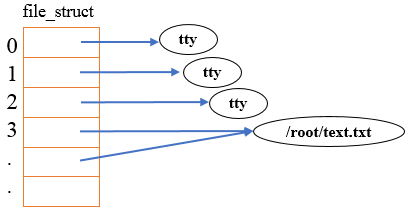 進(jin)程級的(de)描述(shu)符表的(de)每一條目記錄(lu)了單個文件描述(shu)符的(de)相關信息。