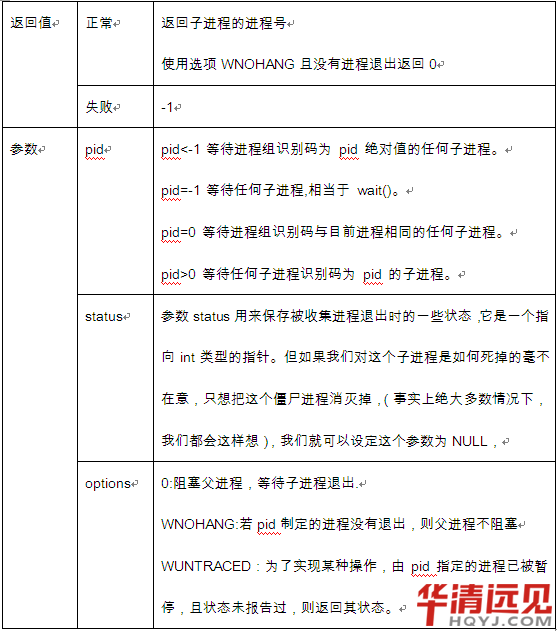 wait: 父進程調用(yong)等待(dai)任(ren)一子進程退出。等同于(yu)waitpid(-1, &status, 0);