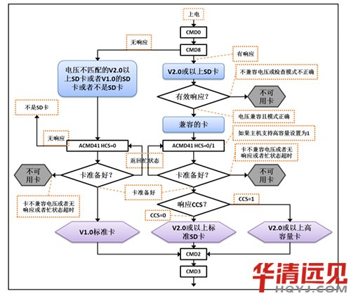 SD 卡初始化過程主要是卡識別和相關 SD 卡狀(zhuang)態獲取。整個初始化函(han)數流程如下: