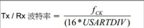 其中,f PLCK 為 USART 時鐘, USARTp 是一個存放在波特率寄存器(USART_BRR)的一個無符號定點數。其中 p_Mantissa[11:0]位定義 USARTp 的整數部分,p_Fraction[3:0]位定義 USARTp 的小數部分。