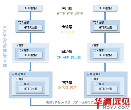 應用層是最上面的,這里面有HTTP、FTP等協議;第二層是傳輸層,著名的TCP和UDP協議就在這個層次;第三層是網絡層,IP協議就在這里,它負責對數據加上IP地址和其他的數據以確定傳輸的目標;第四層叫數據鏈路層,這個層次為待傳送的數據加入一個以太網協議頭,并進行CRC編碼,為最后的數據傳輸做好準備。