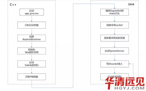 所以應該從底層開始啟動,首先是 bootloader, kernel , java庫 jvm初始化, framework初始化,app初始化,由下往上依次進行.