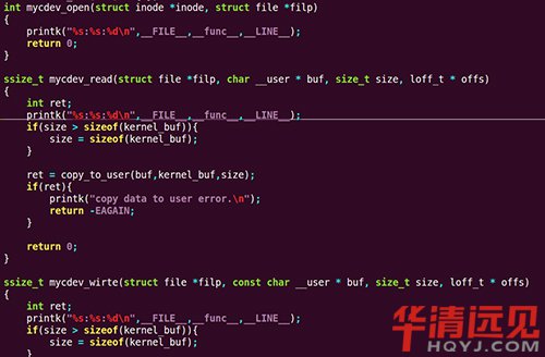 2)、內核驅動:這一小段代碼必須依賴內核才能夠實現相應的功能,又C語言開發,這段代碼在寫時必須依賴一定框架。