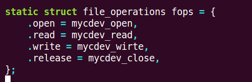 然后我們要告訴內核有這兩個函數,通過file_operations 這個結構體來完成,通常定義在內核的include/linux/fs.h文件中,當應用程序操作設備文件時所調用的open、read、write等函數,最終會調用這個結構中所指定的對應函數: