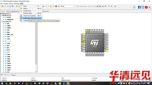 5、下載stm32f051k8u6的庫,如下圖 Help-> Install New Libraries