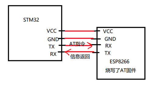 STM32是通過串口(kou)向(xiang)ESP8266發送AT指令達到控制(zhi)ESP8266工作的(de)目(mu)的(de)。