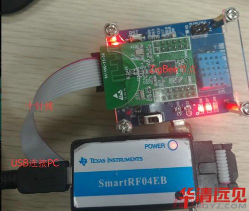 下(xia)載(zai)完之后(hou),從新(xin)上(shang)電等待連接。觀察實(shi)驗現象(xiang)(協調節點的(de)燈的(de)閃亮情況(kuang))。