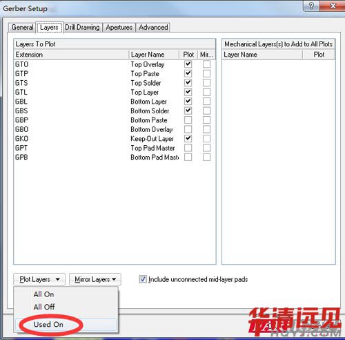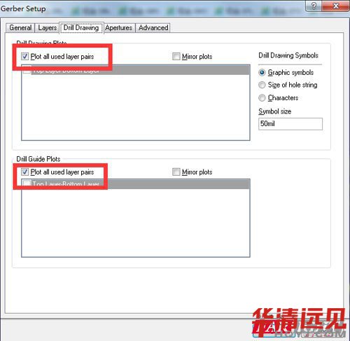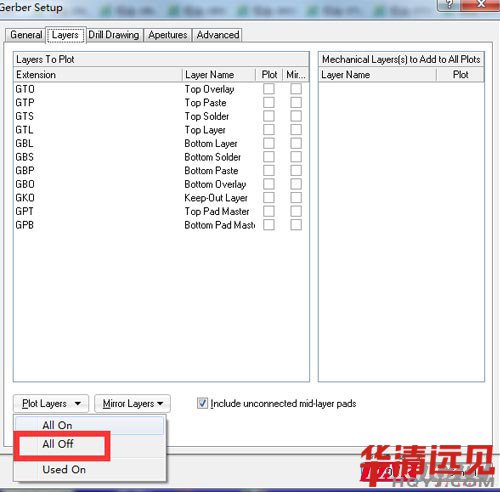 接(jie)著重復操作【File】→【Fabrication Outputs】→【Gerber Files】, 這(zhe)一次選(xuan)擇(ze)【Drill Drawing】,然(ran)后勾上下面兩(liang)個選(xuan)項。打開【Layers】菜單選(xuan)擇(ze)【 All Off】,然(ran)后點擊 【OK】,同(tong)樣彈出窗口直(zhi)接(jie)關閉即(ji)可,無需保存(cun)。