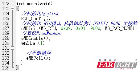 下(xia)(xia)面開始分析下(xia)(xia)freemodbus得啟動流程(cheng),老(lao)規矩我們還(huan)是從main()函數下(xia)(xia)手: