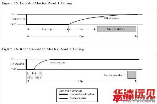 插圖15表明了對于(yu)讀時隙,TINIT(下降沿(yan)(yan)后低電平(ping)持續時間(jian)), TRC(上升(sheng)沿(yan)(yan))和TSAMPLE(主(zhu)機采樣總線)的時間(jian)和要在15μs以內。