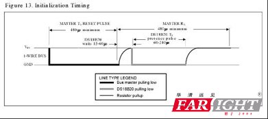 DS18B20的(de)所有通信(xin)都由(you)(you)(you)由(you)(you)(you)復(fu)位(wei)脈(mo)沖(chong)組成的(de)初始(shi)化序列開始(shi)。該初始(shi)化序列由(you)(you)(you)主機發出(chu),后(hou)跟由(you)(you)(you)DS18B20發出(chu)的(de)存(cun)在(zai)(zai)脈(mo)沖(chong)(presence pulse)。下圖(插圖13,即如(ru)下截圖)闡(chan)述了(le)這(zhe)一(yi)點。當發出(chu)應答復(fu)位(wei)脈(mo)沖(chong)的(de)存(cun)在(zai)(zai)脈(mo)沖(chong)后(hou),DS18B20通知(zhi)主機它(ta)在(zai)(zai)總線上并且準備好(hao)操作(zuo)了(le)。