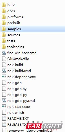 samples:該目錄包含了一些實例應用程序,這些程序可以體現Android NDK的特性,對應學習android ndk的特性會很有幫助