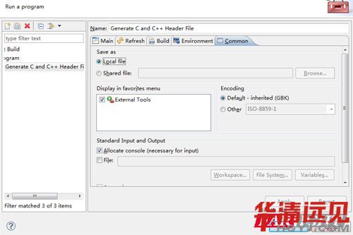 配置的方式是:選項 Run->External Tools->External Tools Configurations