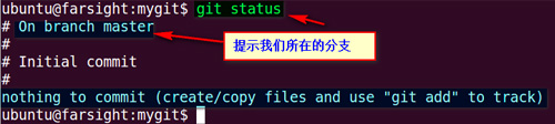 上面提示,當前(qian)倉庫沒(mei)有任何要(yao)提交(jiao)的(de)東西(xi),上圖中(zhong)關于分支的(de)概念我們在(zai)后(hou)面會進行說明!