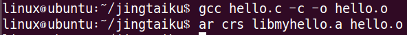 第三步(bu):使用ar將hello.o制作成(cheng)靜態庫(ku)