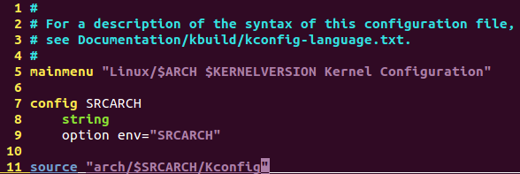 進入菜單之后我們可以看到(dao)有(you)(you)標題(ti)、有(you)(you)說(shuo)明性的(de)文(wen)(wen)字、和關(guan)鍵的(de)選項。它們又是(shi)(shi)如何呈現(xian)在菜單中(zhong)的(de)呢,其實系統會(hui)讀取源(yuan)碼(ma)目(mu)錄下面Kconfig文(wen)(wen)件(jian),Kconfig文(wen)(wen)件(jian)是(shi)(shi)一個(ge)幫助內核(he)添加(jia)內核(he)選項的(de)一個(ge)配置文(wen)(wen)件(jian),打開這個(ge)Kconfig文(wen)(wen)件(jian)可以看到(dao):