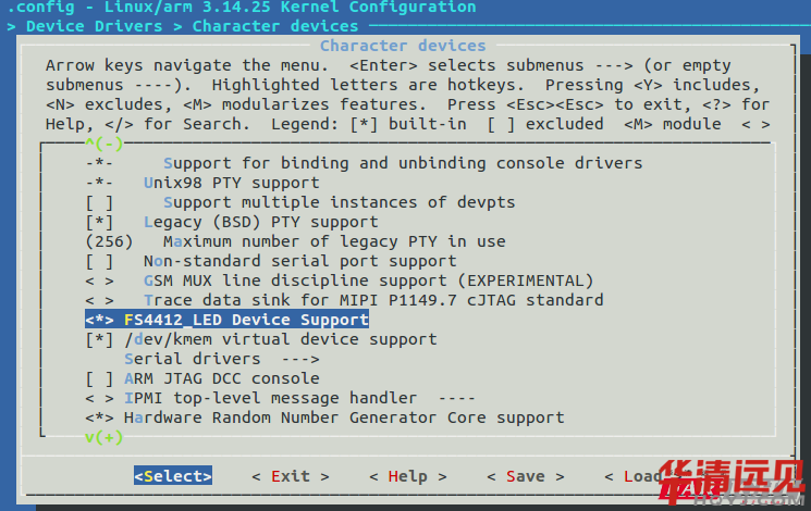 如果FS4412_LED Device Support選項(xiang)被選中為(wei)*,則(ze)保存(cun)配(pei)置(zhi)(zhi)之后(hou)(hou)會在源碼(ma)目錄下面(mian)的(de)(de).config文件(jian)中出(chu)現CONFIG_FS4412_LED的(de)(de)配(pei)置(zhi)(zhi)項(xiang)并(bing)賦值為(wei)y;這個.config文件(jian)就是配(pei)置(zhi)(zhi)內核后(hou)(hou)生成的(de)(de)保存(cun)配(pei)置(zhi)(zhi)信息(xi)的(de)(de)文件(jian)。