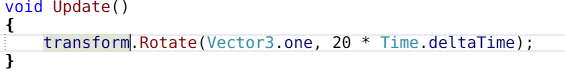 我(wo)們(men)可以看(kan)到我(wo)們(men)GameObject在場中旋轉起來了(le)。