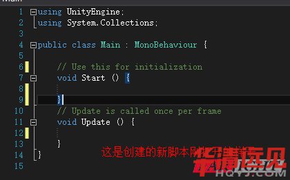 所有(you)的(de)行為腳本(ben)必(bi)須從(cong)MonoBehaviour繼承(直接的(de)或(huo)間接的(de)).在(zai)JavaScript 中(zhong)這個是自動完成的(de),但(dan)是在(zai)C#或(huo)Boo中(zhong),必(bi)須顯(xian)示(shi)注(zhu)明.如果你(ni)通過Asset -> Create -> C Sharp/Boo Script創(chuang)建(jian)腳本(ben),系統模版已經包含了必(bi)要(yao)的(de)定義.