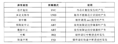 ARM支持的異常(chang)種(zhong)類: