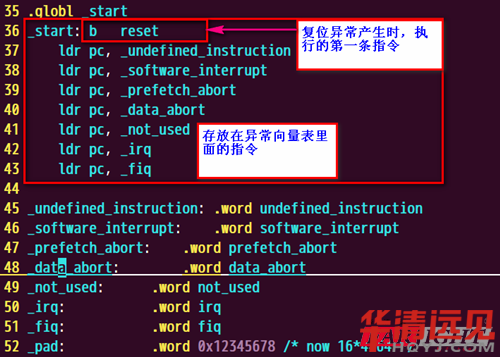 從上面我們(men)可以知道,異常向量表里面存(cun)放的(de)(de)(de)(de)都是(shi)跳轉指令。有些(xie)時直接通(tong)(tong)過b指令實現(xian)的(de)(de)(de)(de),有些(xie)時通(tong)(tong)過修改pc值(zhi)實現(xian)的(de)(de)(de)(de)。這也(ye)就是(shi)剛(gang)(gang)剛(gang)(gang)我說到的(de)(de)(de)(de)"火箭"。跳轉的(de)(de)(de)(de)目的(de)(de)(de)(de)是(shi)跳到一(yi)個地(di)方對異常進行處(chu)理(li)。也(ye)就是(shi)我說到的(de)(de)(de)(de)到醫生(sheng)那里去"治療"。
