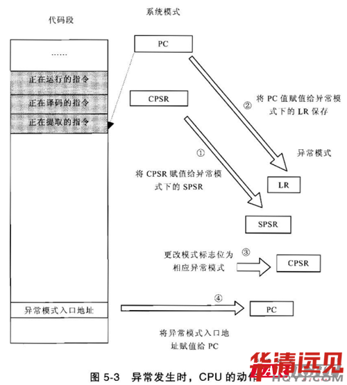 (2)把PC寄存器保存到相應(ying)異常模(mo)式下的LR中
