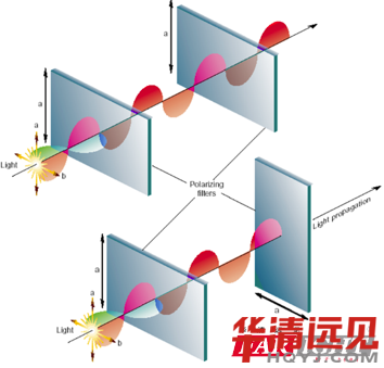 • 偏(pian)(pian)光(guang)(guang)(guang)(guang)板的特(te)性(xing):將非(fei)(fei)偏(pian)(pian)極(ji)(ji)光(guang)(guang)(guang)(guang)(一(yi)般光(guang)(guang)(guang)(guang)線(xian))過濾成偏(pian)(pian)極(ji)(ji)光(guang)(guang)(guang)(guang)。當非(fei)(fei)偏(pian)(pian)極(ji)(ji)光(guang)(guang)(guang)(guang)通(tong)過a方(fang)(fang)(fang)向(xiang)(xiang)的 偏(pian)(pian)光(guang)(guang)(guang)(guang)片時(shi),光(guang)(guang)(guang)(guang)線(xian)被(bei)(bei)過濾成與a方(fang)(fang)(fang)向(xiang)(xiang)平(ping)行的線(xian)性(xing)偏(pian)(pian)極(ji)(ji)光(guang)(guang)(guang)(guang)。當然(ran)如果非(fei)(fei)偏(pian)(pian)極(ji)(ji)光(guang)(guang)(guang)(guang)通(tong)過b方(fang)(fang)(fang)向(xiang)(xiang)的偏(pian)(pian)光(guang)(guang)(guang)(guang)片時(shi),光(guang)(guang)(guang)(guang)線(xian)會被(bei)(bei)過濾成與b方(fang)(fang)(fang)向(xiang)(xiang)平(ping)行的線(xian)性(xing)偏(pian)(pian)極(ji)(ji)光(guang)(guang)(guang)(guang)。如下圖(tu)(tu):圖(tu)(tu)1中非(fei)(fei)偏(pian)(pian)極(ji)(ji)光(guang)(guang)(guang)(guang)通(tong)過第(di)(di)一(yi)塊(kuai)(kuai)a方(fang)(fang)(fang)向(xiang)(xiang)的偏(pian)(pian)光(guang)(guang)(guang)(guang)片后(hou),被(bei)(bei)過濾成a方(fang)(fang)(fang)向(xiang)(xiang)平(ping)行的線(xian)性(xing)偏(pian)(pian)極(ji)(ji)光(guang)(guang)(guang)(guang),并且能順利通(tong)過第(di)(di)二(er)(er)張a方(fang)(fang)(fang)向(xiang)(xiang)的偏(pian)(pian)光(guang)(guang)(guang)(guang)片。圖(tu)(tu)2中非(fei)(fei)偏(pian)(pian)極(ji)(ji)光(guang)(guang)(guang)(guang)通(tong)過第(di)(di)一(yi)塊(kuai)(kuai)a方(fang)(fang)(fang)向(xiang)(xiang)的偏(pian)(pian)光(guang)(guang)(guang)(guang)片后(hou),要通(tong)過第(di)(di)二(er)(er)塊(kuai)(kuai)偏(pian)(pian)光(guang)(guang)(guang)(guang)片時(shi),發現(xian)第(di)(di)二(er)(er)塊(kuai)(kuai)偏(pian)(pian)光(guang)(guang)(guang)(guang)片被(bei)(bei)旋(xuan)轉了90度,此時(shi),就無法通(tong)過了。