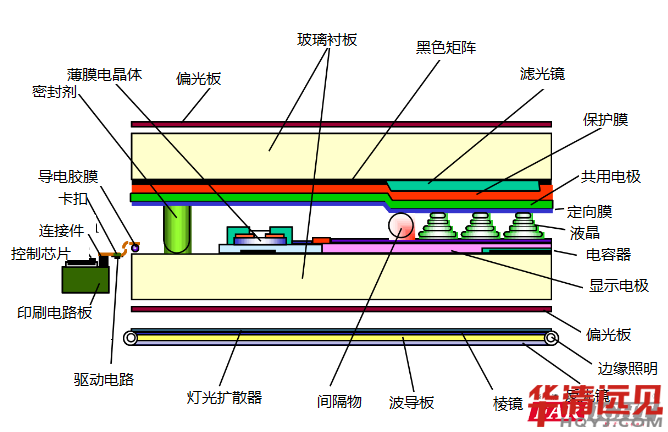 • 上下偏光板,玻(bo)璃(li)基板,液晶:形成偏振光,控(kong)制光線的通過與否;