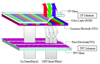sub-pixel沒有導通,則光通過(guo)c/f而顯示顏色(se)
