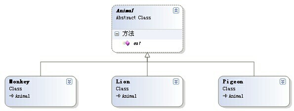 把(ba)動物“吃”的方法(fa)放到一個(ge)接(jie)口(IAnimal)里,然后讓(rang)具(ju)體(ti)的動物類(Wolf/Sheep)繼(ji)承這個(ge)接(jie)口,并根(gen)據自己的需要實(shi)現這個(ge)接(jie)口。