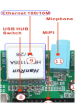 UT4412BV02 評估板板載100M/10M 自適應網口,網口芯片采用DM9000芯片。接口采用具有Link / Active 指示燈和隔離變壓器的RJ45 插座。如下圖所示:
