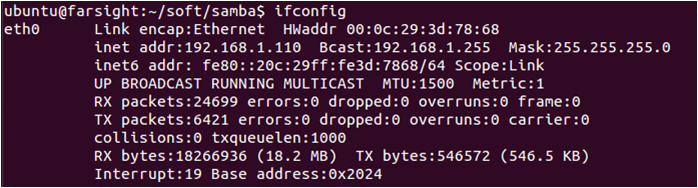查看以太網口(ifconfig),如下圖所示,出現“eth0”設備,則網卡正常加載成功。