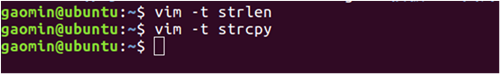 “$ vi –t tag” :在運行vim的時候加上“-t”參數,例如: