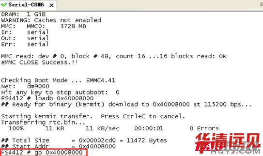 等到數(shu)據接(jie)收(shou)完畢后,執(zhi)行 # go 0x40008000 跳轉到下載(zai)代碼位置(zhi)執(zhi)行。