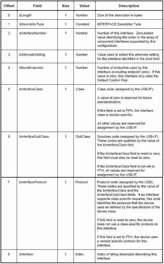 存儲類規范(fan)是由(you)接口(kou)描述符(fu)決(jue)定(ding)的。接口(kou)描述符(fu)各項的定(ding)義義如下(xia):
