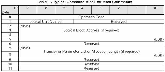 Bulk-Only 的(de)CBW 中的(de)CBWCB 中的(de)內容即(ji)為如(ru)下格式的(de)命令(ling)(ling)塊描述符(Command Block Descriptor)。SCSI-2 有三種(zhong)字(zi)(zi)(zi)長的(de)命令(ling)(ling),6 字(zi)(zi)(zi)節(jie)(jie)、10字(zi)(zi)(zi)節(jie)(jie)和12字(zi)(zi)(zi)節(jie)(jie),Microsoft Windows 環境下支持12 字(zi)(zi)(zi)節(jie)(jie)長的(de)命令(ling)(ling)。