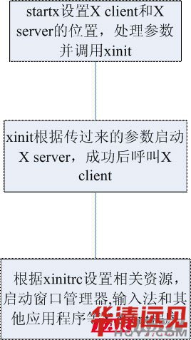#!/bin/sh 可(ke)(ke)以看(kan)到(dao),startx主要是(shi)置(zhi)(zhi)X client和(he)X server所在的位(wei)置(zhi)(zhi),并處理(li)(li)相關參數(shu),后交給(gei)xinit處理(li)(li)。可(ke)(ke)以看(kan)出startx 設(she)置(zhi)(zhi)X client的位(wei)置(zhi)(zhi)是(shi)先搜尋(xun)$HOME/.xinitrc,然后是(shi)/etc/X11/xinit/xinitrc;設(she)置(zhi)(zhi)X server的位(wei)置(zhi)(zhi)是(shi)先搜尋(xun)$HOME/.xserverrc,然后是(shi)/etc/X11/xinit/xserverrc。在ubuntu8.10的$HOME下面(mian)沒有.xinitrc和(he).xerverrc,所以startx直接去/etc/下面(mian)找x-client和(he)x-server,完成啟動x的工作(zuo)。 總(zong)結一下x-window的啟動流程(cheng)圖(tu):