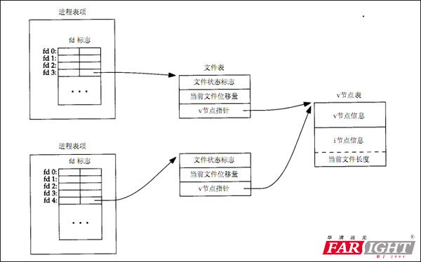 if((src=open(argv[1],O_RDONLY))<0) 是(shi)不是(shi)只(zhi)要這(zhe)(zhe)樣寫就可以實現功能?實踐證(zheng)明這(zhe)(zhe)樣寫不行的,那(nei)么為什(shen)么這(zhe)(zhe)樣寫不可以呢? 子(zi)進(jin)(jin)(jin)(jin)(jin)程(cheng)(cheng)(cheng)和父(fu)(fu)進(jin)(jin)(jin)(jin)(jin)程(cheng)(cheng)(cheng)繼(ji)續執(zhi)行fork之后的指令。子(zi)進(jin)(jin)(jin)(jin)(jin)程(cheng)(cheng)(cheng)是父(fu)(fu)進(jin)(jin)(jin)(jin)(jin)程(cheng)(cheng)(cheng)的復制(zhi)品。子(zi)進(jin)(jin)(jin)(jin)(jin)程(cheng)(cheng)(cheng)獲(huo)得父(fu)(fu)進(jin)(jin)(jin)(jin)(jin)程(cheng)(cheng)(cheng)數(shu)據空(kong)間、堆棧的復制(zhi)品。注意,這是子(zi)進(jin)(jin)(jin)(jin)(jin)程(cheng)(cheng)(cheng)所擁有(you)的拷貝,父(fu)(fu)、子(zi)進(jin)(jin)(jin)(jin)(jin)程(cheng)(cheng)(cheng)并(bing)不共享(xiang)這些存(cun)儲(chu)空(kong)間部分。那么跟本(ben)例(li)相(xiang)關(guan)的一(yi)條fork特性(xing)就是由父(fu)(fu)進(jin)(jin)(jin)(jin)(jin)程(cheng)(cheng)(cheng)打開的文(wen)件(jian)描(miao)述符也被復制(zhi)到子(zi)程(cheng)(cheng)(cheng)序中。父(fu)(fu)、子(zi)進(jin)(jin)(jin)(jin)(jin)程(cheng)(cheng)(cheng)的每個(ge)相(xiang)同的打開描(miao)述符共享(xiang)一(yi)個(ge)文(wen)件(jian)表項。 在unix高級(ji)環境編(bian)程中有這樣一幅圖(tu)