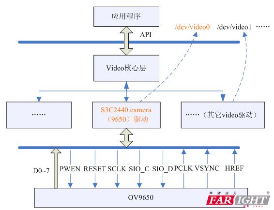 ● V4L2的驅動架構 本文介紹(shao)基于S3C2440硬件平臺的(de)V4L2視頻驅動開發(fa)。攝(she)像頭采用(yong)OmniVision公司的(de)OV9650和OV9655。主(zhu)要包含以下幾個方面的(de)內容: 視頻驅(qu)動的整(zheng)體驅(qu)動框架