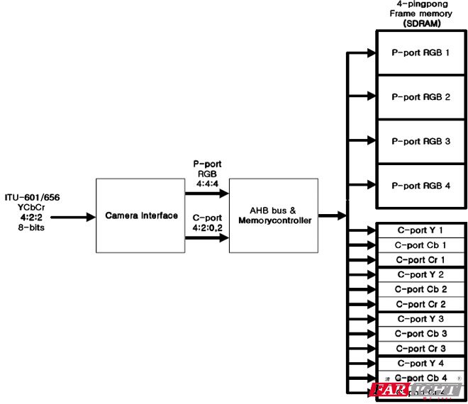 S3C2440 camera控制器支持乒乓存(cun)(cun)儲(chu)(chu)。為(wei)了防止采(cai)集和輸(shu)出之(zhi)間的沖突,采(cai)用(yong)了乒乓存(cun)(cun)儲(chu)(chu)方式。每次(ci)采(cai)集一幀后,自(zi)動轉到(dao)(dao)下(xia)一個存(cun)(cun)儲(chu)(chu)區。如果你因(yin)為(wei)內(nei)存(cun)(cun)空間不足,不想使用(yong)此功能的話,可(ke)以將四個區域設置(zhi)到(dao)(dao)同一塊空間。 在做(zuo)圖像處理時,需要關注到(dao)后存儲區中的圖像格式(shi),如codec通(tong)道硬件自動把Y、Cb、Cr分(fen)離存儲。