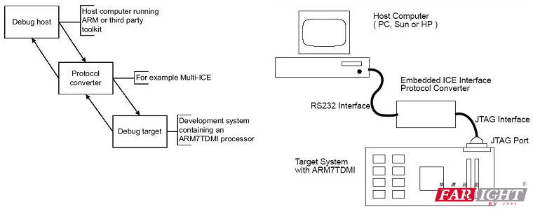 ● 鏡像文件的燒寫功能 ARM7TDMI調試架構: 一個(ge)調(diao)試系統通常包含三個(ge)部分:
