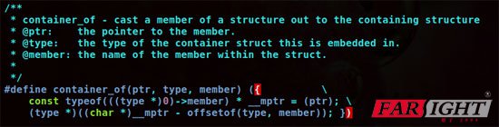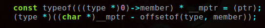 在linux 內核中有一個大(da)名鼎(ding)鼎(ding)的(de)宏container_of(),這(zhe)個宏是(shi)用來(lai)干嘛的(de)呢(ni)?我們先來(lai)看(kan)看(kan)它(ta)在內核中是(shi)怎樣(yang)定義的(de)。
